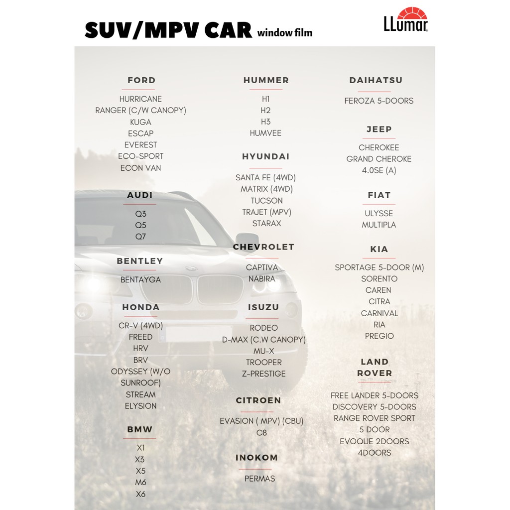 Llumar R Series For Mpv Suv Car Shopee Malaysia